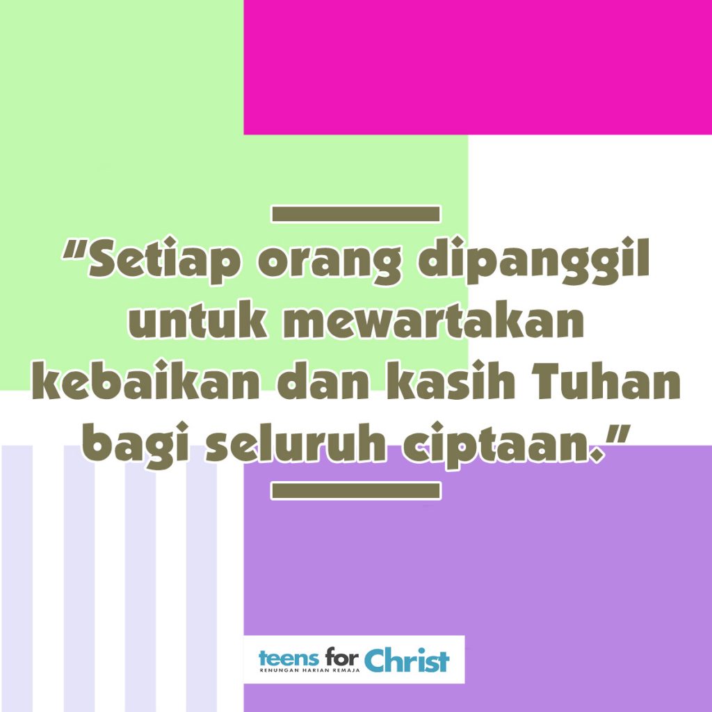 Teens, kita semua adalah murid Yesus di masa kini. Tuhan yang sama juga mengutus kita mewartakan kebaikan dan kasih-Nya bagi seluruh ciptaan. Seperti Tuhan yang memberdayakan 70 murid baru, Ia juga terus membekali kita semua untuk tugas mulia: Menghadirkan damai sejahtera.
