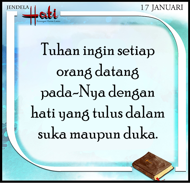 Sahabat Senior, Tuhan ingin kita memiliki sifat seperti anakanak yang tulus dan polos. Agar kita dapat memiliki relasi yang baik dengan Tuhan. Kita juga harus mempercayakan diri kepada Bapa Sorgawi yang selalu mengasihi kita. Jangan terus menerus menyimpan sakit hati di dalam hati kita, bahkan akhirnya menjadi dendam. Kita perlu belajar memiliki sifat kanak-kanak dalam arti yang positif, bukan sifat kekanak-kanakan. Sifat kekanakkanakan artinya suka ngambeg dan suka merajuk. Mudah marah apabila keinginannya tidak terpenuhi. Tuhan ingin setiap orang dengan hati yang tulus datang pada Tuhan dalam suka maupun susah. Tuhan menyediakan berkat-Nya buat kita semua.